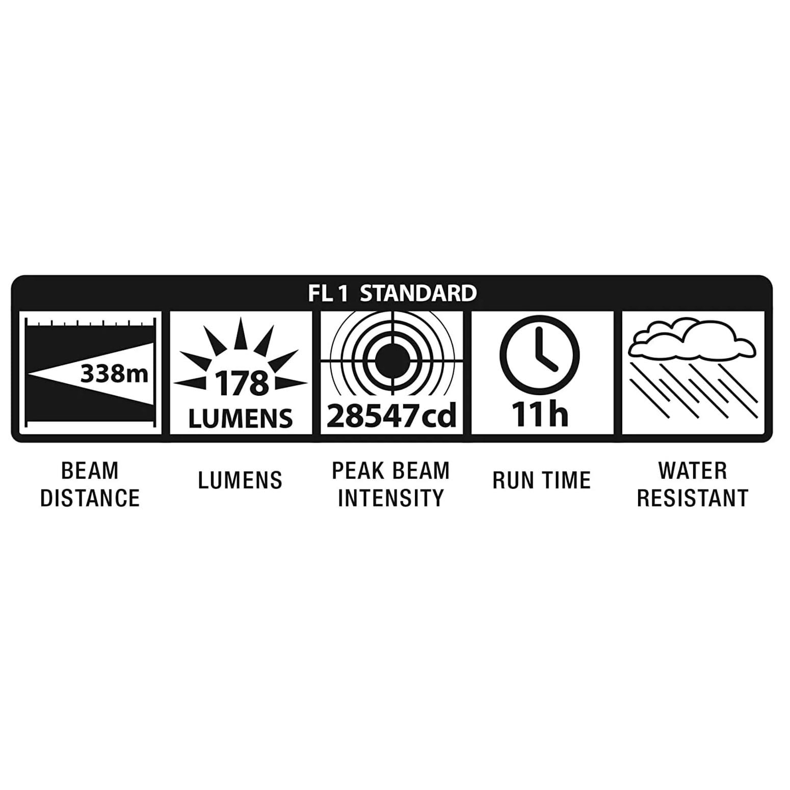 28547cd peak beam intensity, 178 lumens, 338m beam distance